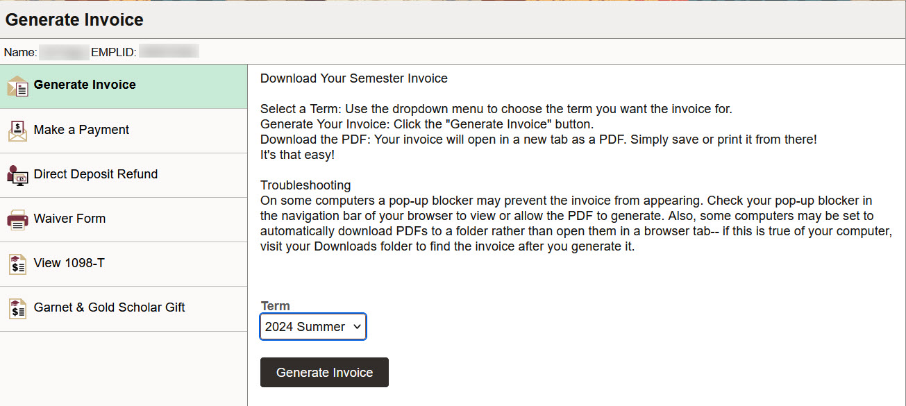 3. Select the term for your invoice and click Generate Invoice.